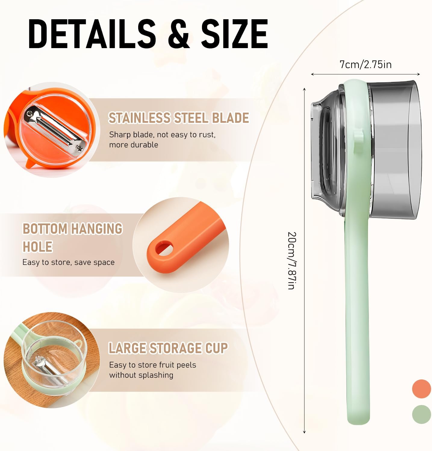 - Convenient Storage: The unique container box that comes with the peeler allows you to neatly store the peeled skin directly when in use. There will be no messy countertops, this feature makes peeling cleaner and easier, providing great convenience during food preparation